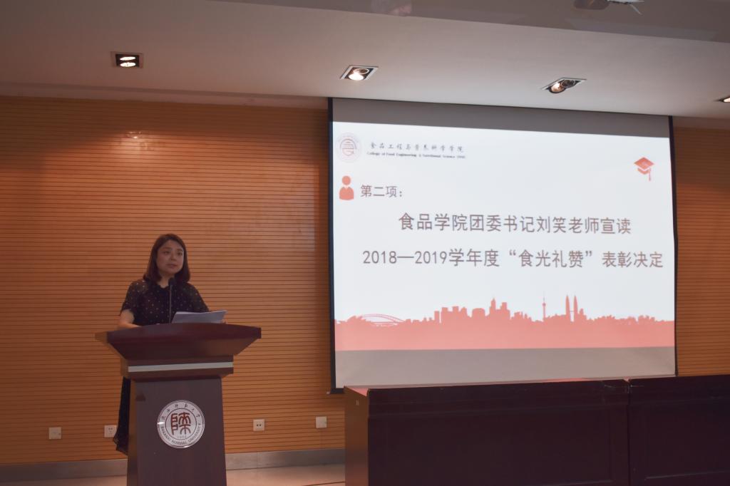 6月16日晚19点,3044am永利集团3044noc于雁塔校区崇鋈楼三楼归仁堂举2018-2019学年度“食光礼赞”综合表彰大会。3044am永利集团3044noc党总支副书记,副院长刘先锋,副院长张宝善,学院教师林德慧,韦露莎,刘玉芳,团委书记刘笑,研究生辅导员张媚,研究生兼职辅导员张婉军,本科生辅导员魏云、段林超、祁美琪参加了会议。