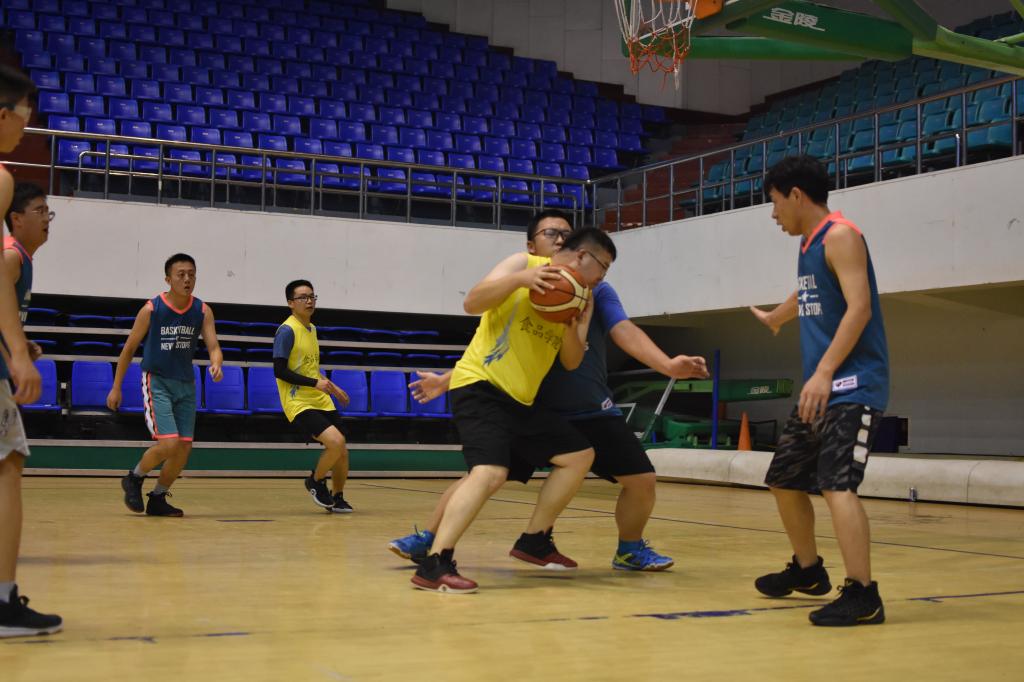 黄队成员由本科生及研一同学构成,蓝队成员为研二研三同学和张忠老师和任道远老师。第一节比分焦灼,交替领先,第二三节蓝队通过自身的体力优势和高效的防守反击逐将比分扩大,第三节结束时蓝队领先近20分。场边的指导老师在间歇时为毕业队耐心指导,分析比赛的形势,比赛期间拉拉队观众们不停地呐喊加油。经过短暂的休息调整,在第四节黄队强势反击,迅速将比分缩小至十分以内,但蓝队在最后五分钟稳住了比赛的走势,最终以76:65赢得比赛。